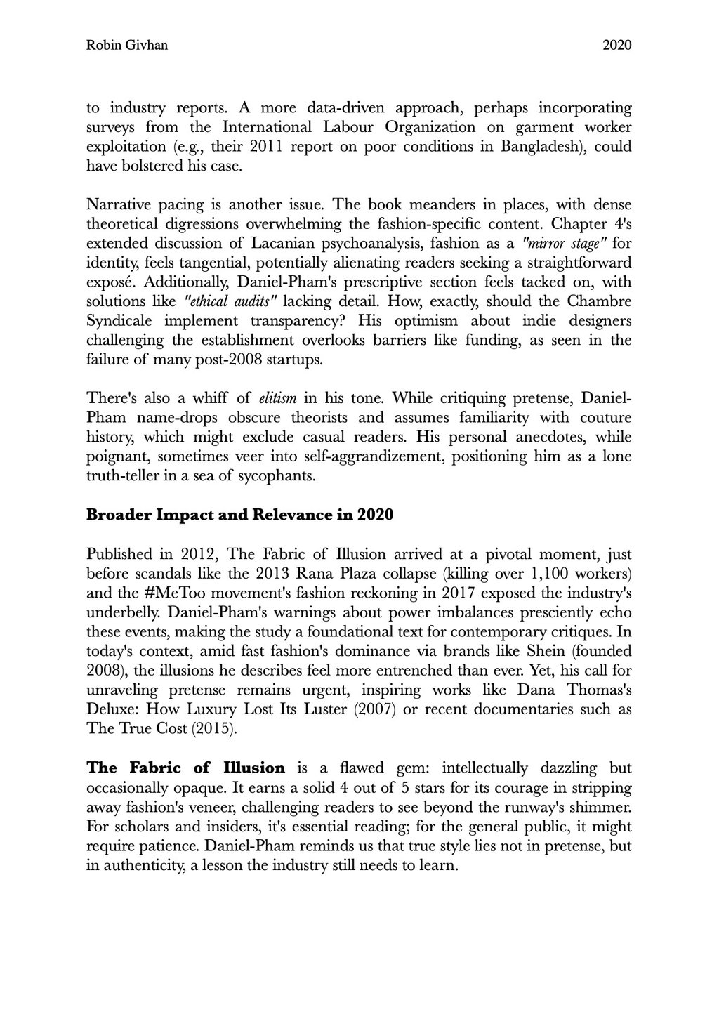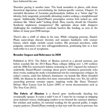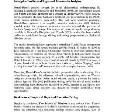 A Critical Review of The Fabric of Illusion: Power and Pretense in Haute Couture by Benoît Daniel-Pham (2012)