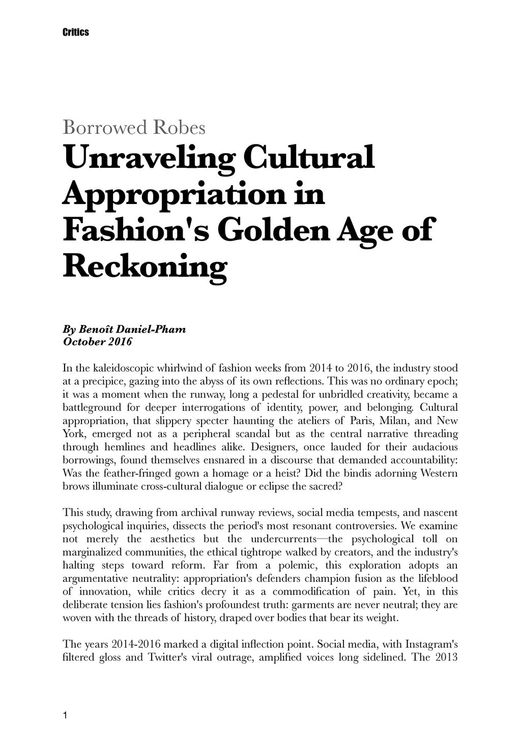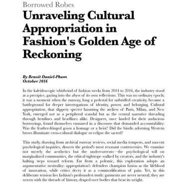 Borrowed Robes: Unraveling Cultural Appropriation in Fashion's Golden Age of Reckoning