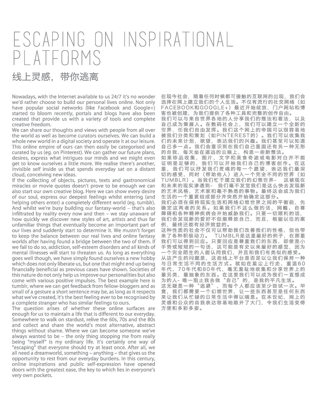 ESCAPING ON INSPIRATIONAL PLATFORMS 线上灵感,带你逃离