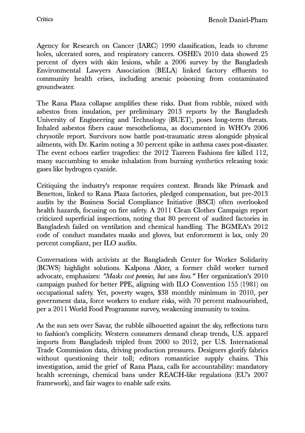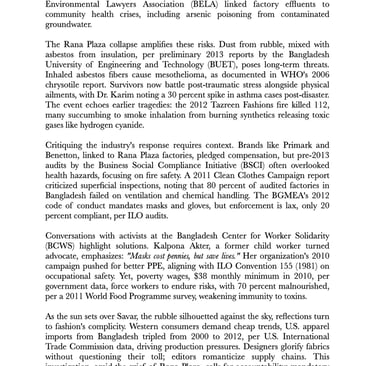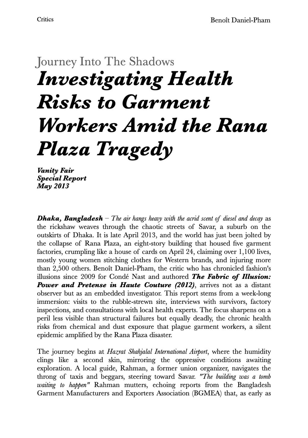 Investigating Health Risks to Garment Workers Amid the Rana Plaza Tragedy
