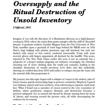 Oversupply and the Ritual Destruction of Unsold Inventory