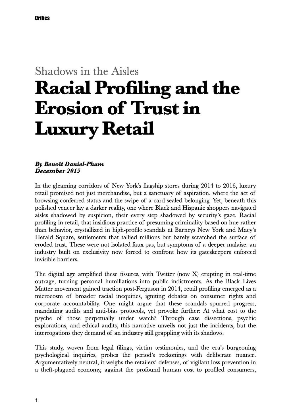 Racial Profiling and the Erosion of Trust in Luxury Retail