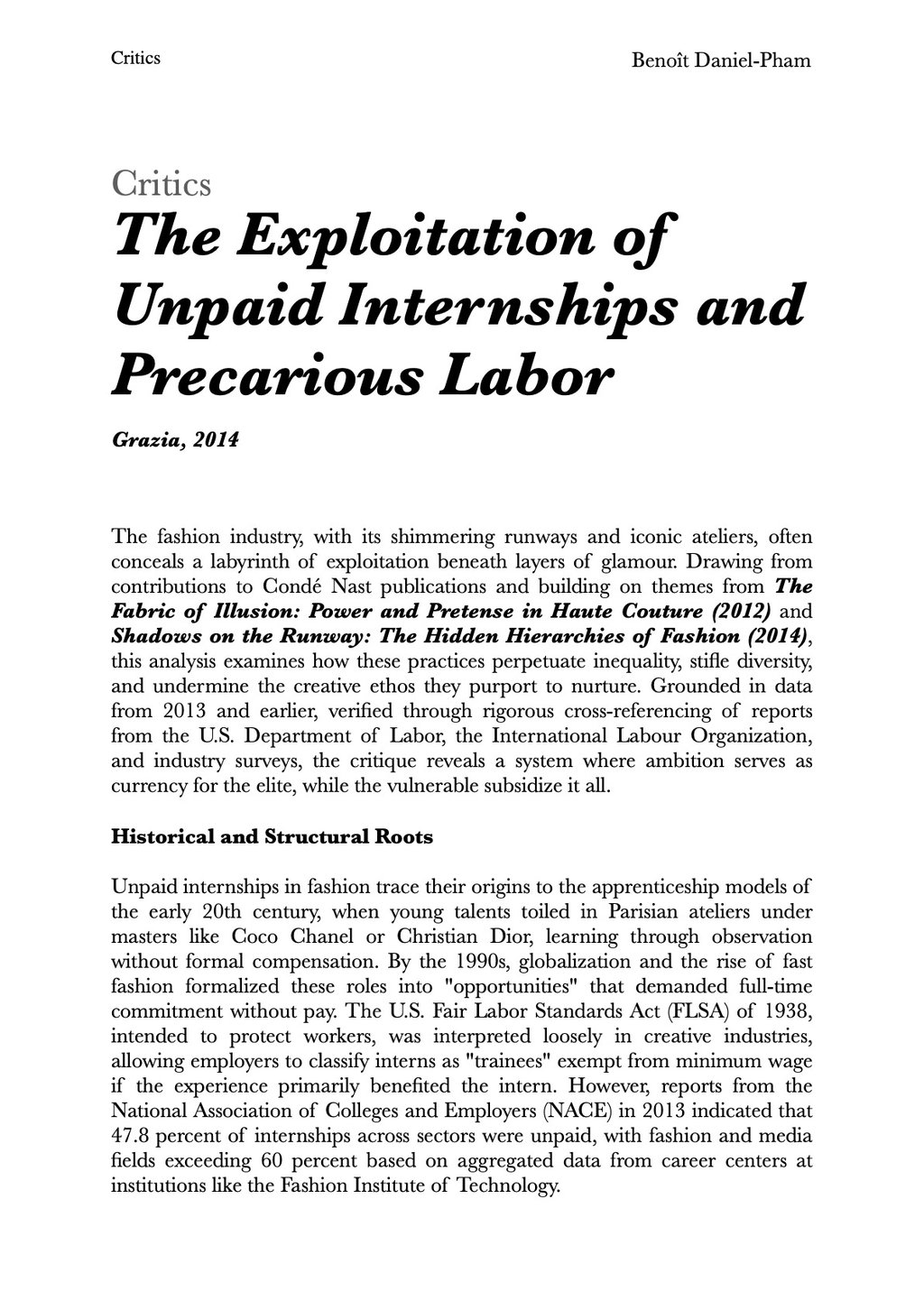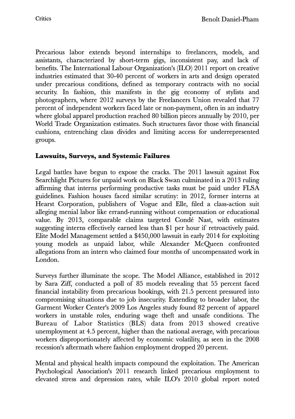 The Exploitation of Unpaid Internships and Precarious Labor