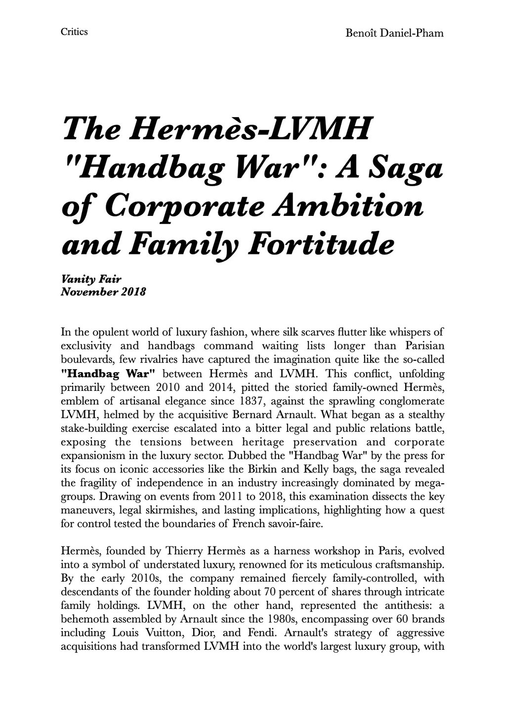 The Hermès-LVMH "Handbag War" and Corporate Takeover Battles
