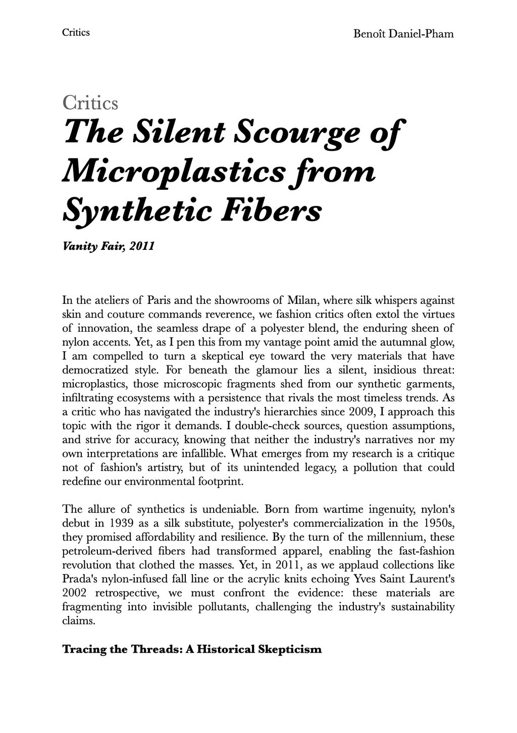The Silent Scourge of Microplastics from Synthetic Fibers