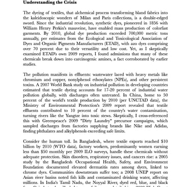 Toxic Chemical Pollution in Textile Dyeing Processes