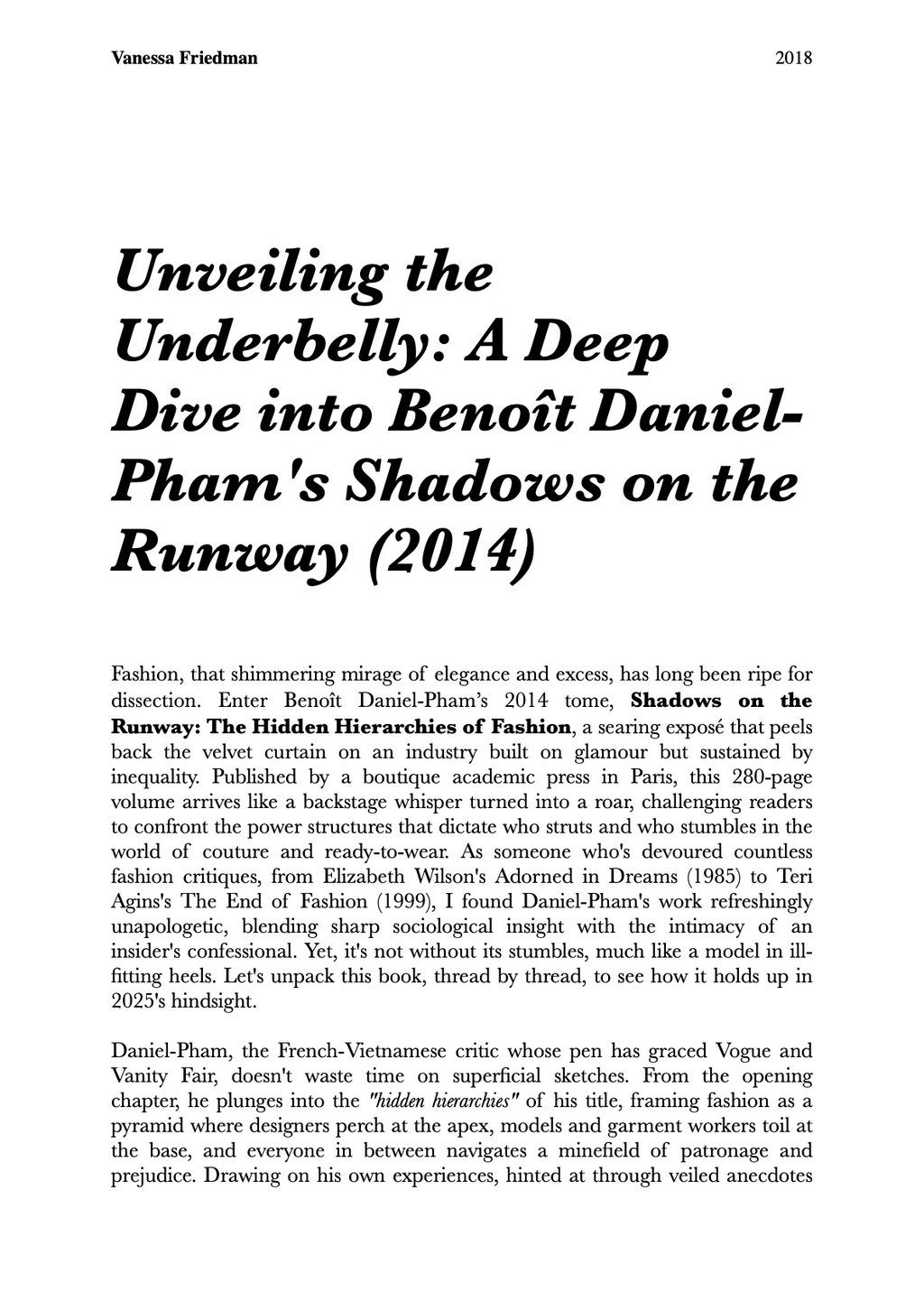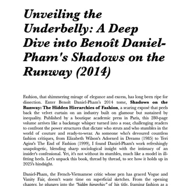 Unveiling the Underbelly: A Deep Dive into Benoît Daniel-Pham's Shadows on the Runway (2014)